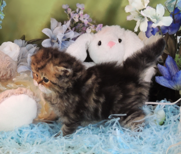 Don't pass this little guy up ! If you want an intelligent kitten that has tons of personality, to make you laugh with his antics. He is so adorable to watch his soft nature personality, play and interact with his surroundings. Even when he takes a nap he is so cute ! You can see he is a very special tiny Persian kitten. When you walk in the room, he stands up like a bunny on 2 feet and stays there ! Now this is a "love bunny "