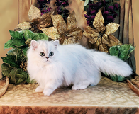 This little girl is a very white Silver Chinchilla Persian kitten with a soft- faint mist of silver