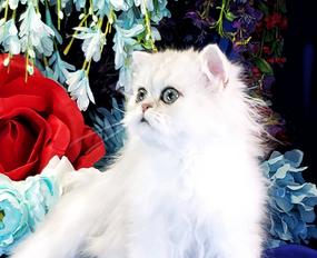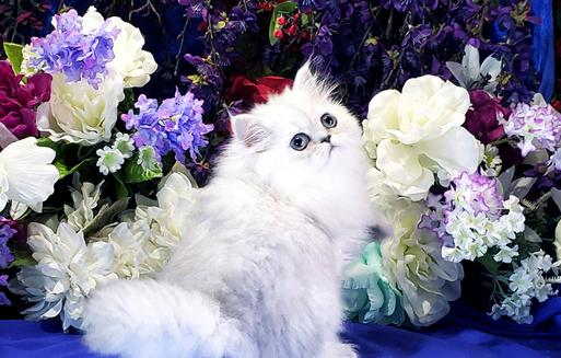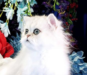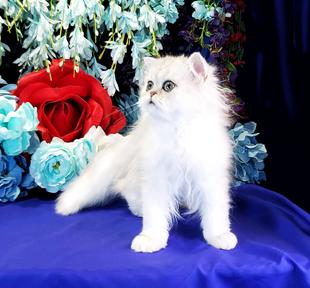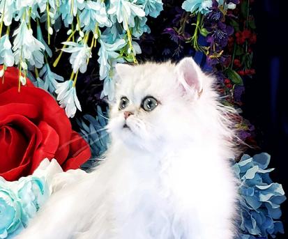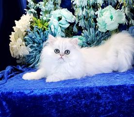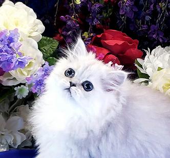 He possesses a Silver Chinchilla coat that is soft, silky, mink texture that is easy to care for!