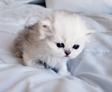 A very white Silver Chinchilla male Persian kitten 6 weeks old in this photo has extraordinary large eyes, a cute turn up nose,