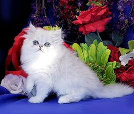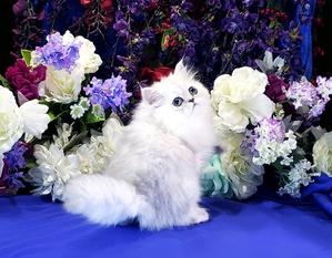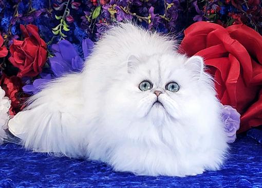 He has a very white, clean Chinchilla coat lightly misted in a soft Silver