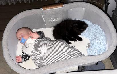 "He sneaks into the bassinet during nap times