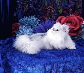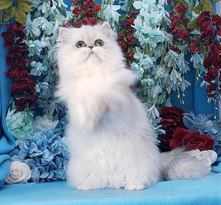 He has a very white, clean Chinchilla coat lightly misted in a soft Silver