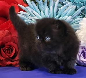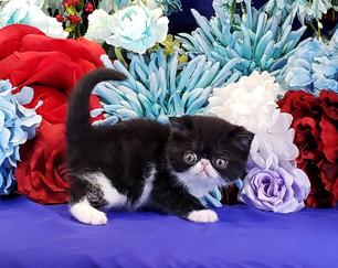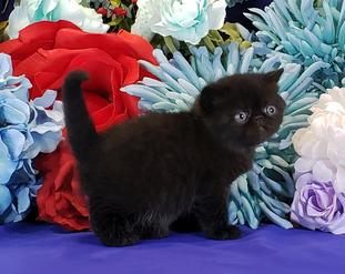 His sire is "Satin Lover" a black Exotic Shorthair that is stunningly beautiful with correct brilliant copper eyes !