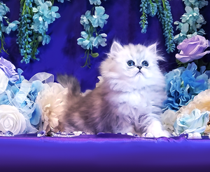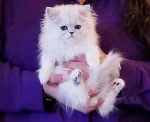 2018 Customer departing with tiny Doll Face Silver Chinchilla Persian kitten