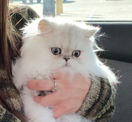 Rachel and Chad purchase Luna Sky Anderson; a Safir x Giovanna Silver Persian female kitten for their 9 year old daughter.
